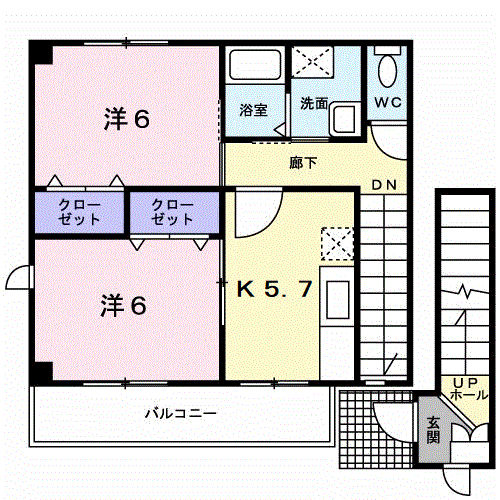 イオンモール近くの2DKタイプ!単身でもファミリーでもOKな間取りです!